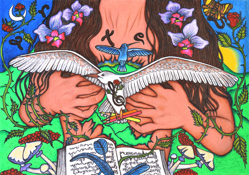 Las artes son mi forma de habitar el mundo. Me inspiran la naturaleza y los saberes ancestrales; desde ahí busco llenar de color y sentido lo que me rodea, reconectarme con nuestras raíces y recordar que el amor y el respeto por la vida son los cimientos de un mundo que aún puede ser.