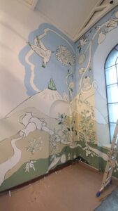 Trabajar junto a un muralista especializado fue un aprendizaje profundo, exploré técnicas profesionales del muralismo y viví de cerca lo que significa la creación colectiva al servicio de una memoria compartida. La Sala Casa Común, proyecto de la Curaduría de Etnografía, abrirá pronto al público en 2026 en la sede del Panóptico de Bogotá.